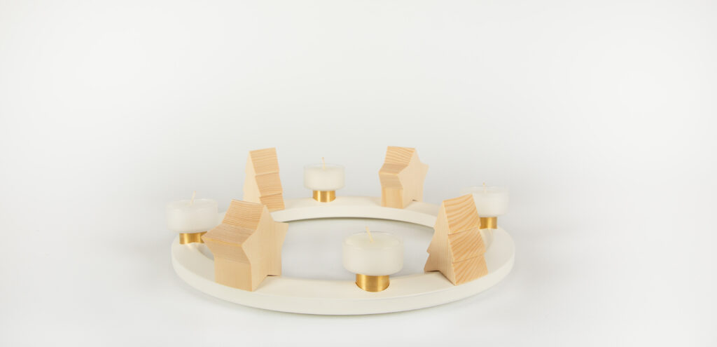 Der reifenring ist ein Tischkranz, welcher mit handgefertigten Holzfiguren bestückt ist. Diese sind durch das traditionelle und einzigartige Handwerk des Reifendrehens entstanden. Der reifenring kann als Adventskranz und durch die beidseitige Nutzbarkeit zu weiteren Anlässen sowie Jahreszeiten dekoriert werden. Saisonale Motive ergänzen den Ring dabei zu einem liebevollen Begleiter für das ganze Jahr.